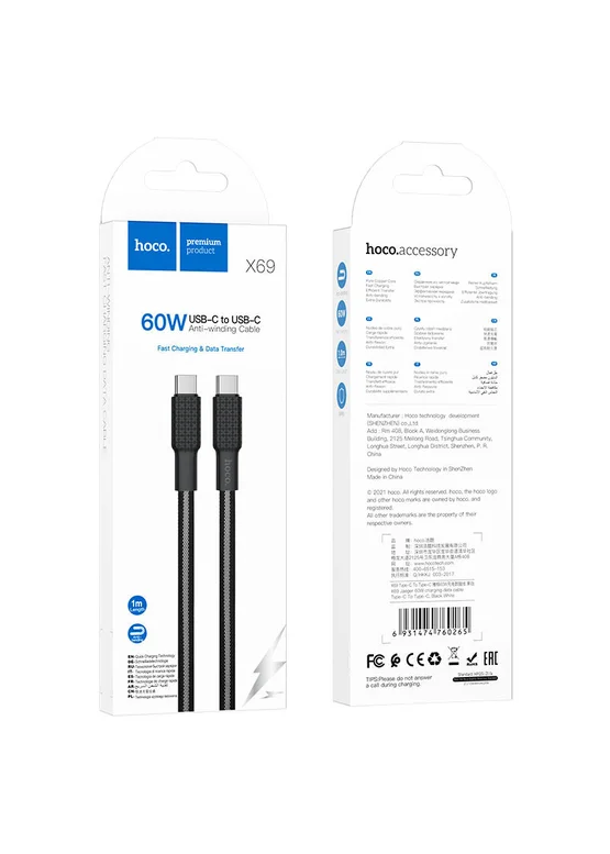 Дата кабель Hoco X69 Jaeger 60W Type-C to Type-C (1m) Черный / Белый