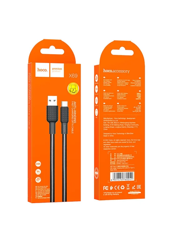 Дата кабель Hoco X69 Jaeger USB to Type-C (1m) Black / White
