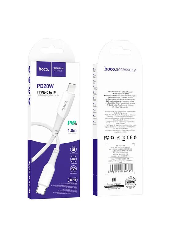 Дата кабель Hoco X70 Ferry PD Type-C to Lightning (1m) Белый