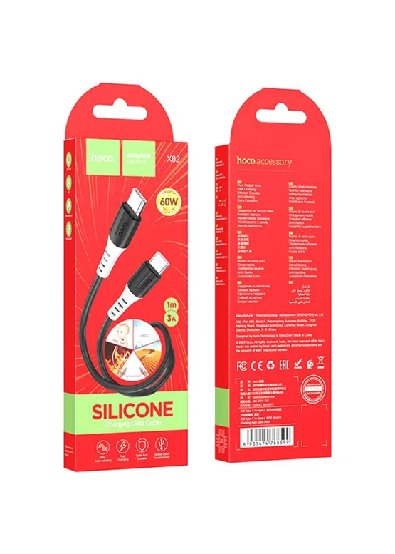 Дата кабель Hoco X82 Silicone Type-C to Type-C 60W (1m) Black