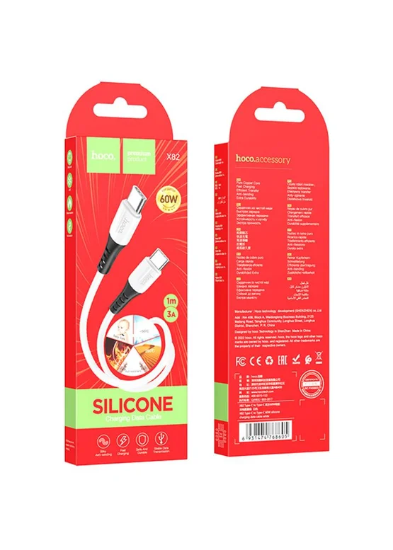 Дата кабель Hoco X82 Silicone Type-C to Type-C 60W (1m) White