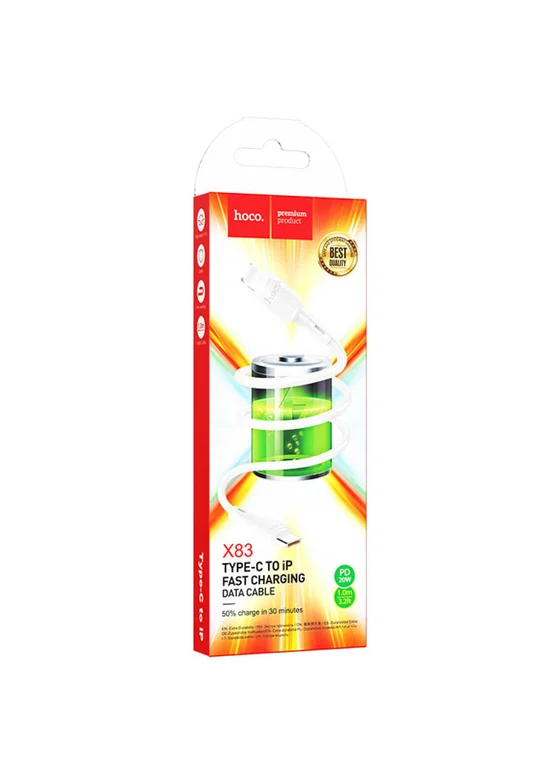 Дата кабель Hoco X83 Victory PD 20W Type-C to Lightning (1m) White