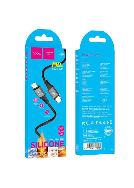 Дата кабель Hoco X86 Spear Type-C to Lightning 20W (1m) Black
