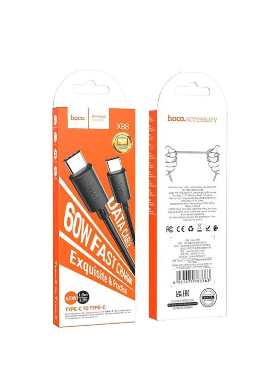 Дата кабель Hoco X88 Gratified PD 60W Type-C to Type-C (1m) Black