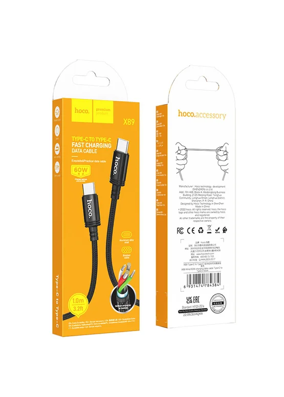 Дата кабель Hoco X89 Wind 60W Type-C to Type-C (1m) Black
