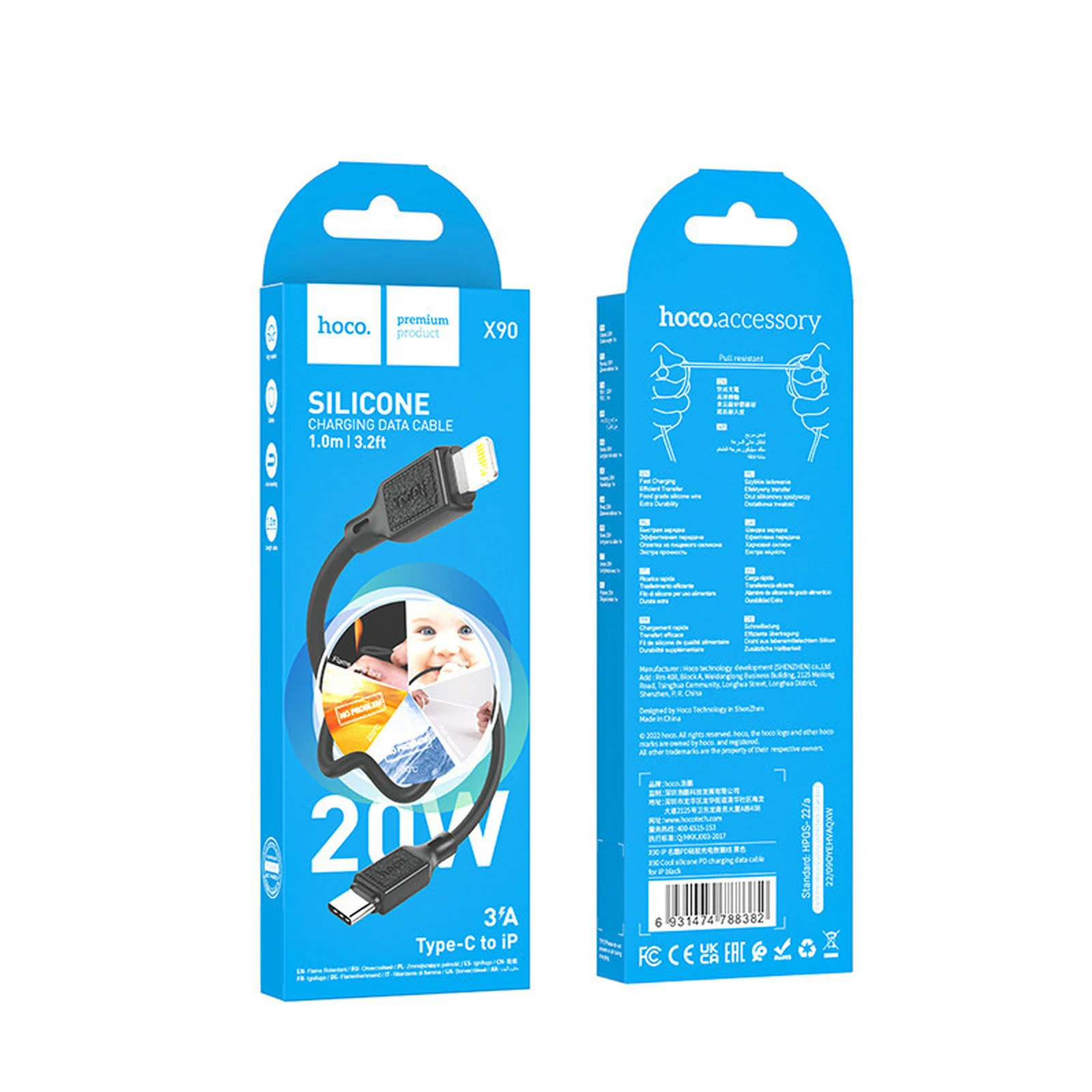 Дата кабель Hoco X90 Cool silicone Type-C to Lightning 20W (1m) Black