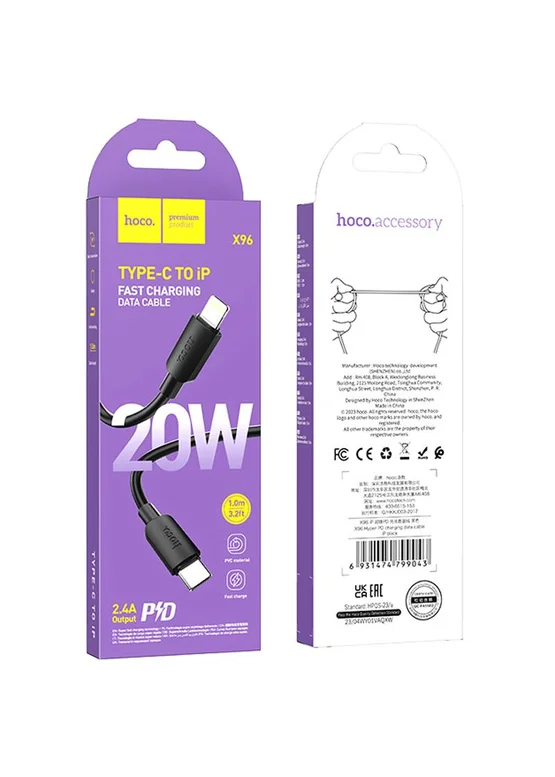 Дата кабель Hoco X96 Hyper Type-C to Lightning 20W (1m) Black