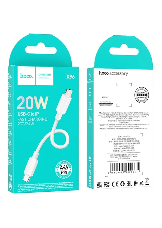 Дата кабель Hoco X96 Hyper Type-C to Lightning 20W (1m) White