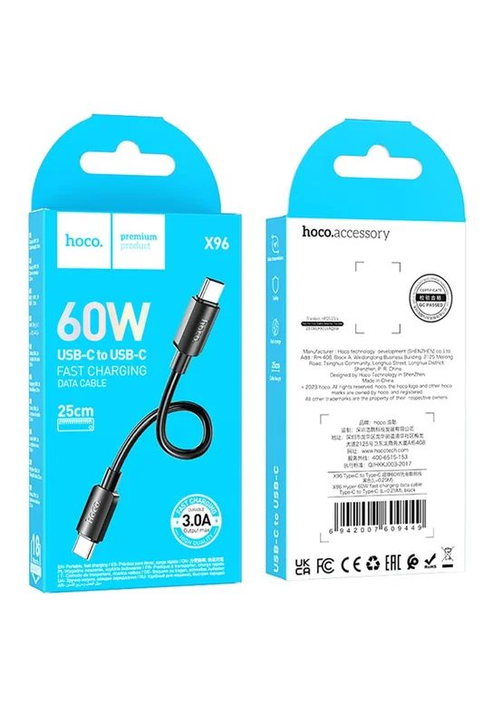 Дата кабель Hoco X96 Hyper Type-C to Type-C 60W (0.25m)