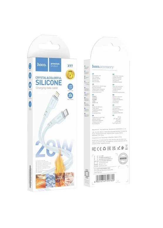 Дата кабель Hoco X97 Crystal color Type-C to Lightning 20W (1m) Light blue