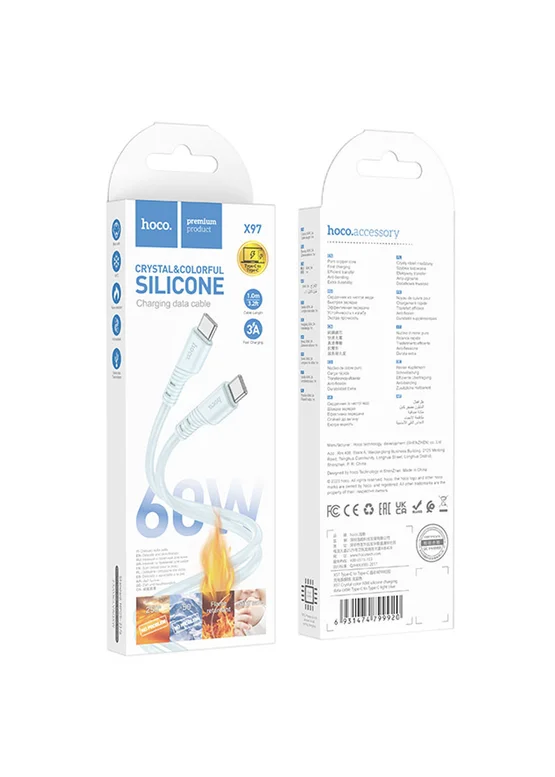 Дата кабель Hoco X97 Crystal color Type-C to Type-C 60W (1m) Light blue