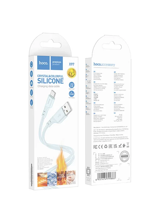 Дата кабель Hoco X97 Crystal color USB to Type-C (1m) Light blue