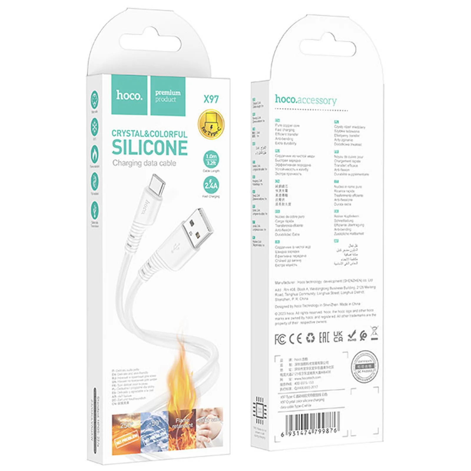 Дата кабель Hoco X97 Crystal color USB to Type-C (1m) White