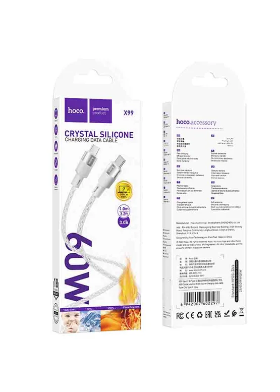 Дата кабель Hoco X99 Crystal Junction Type-C to Type-C 60W (1.2m) Gray