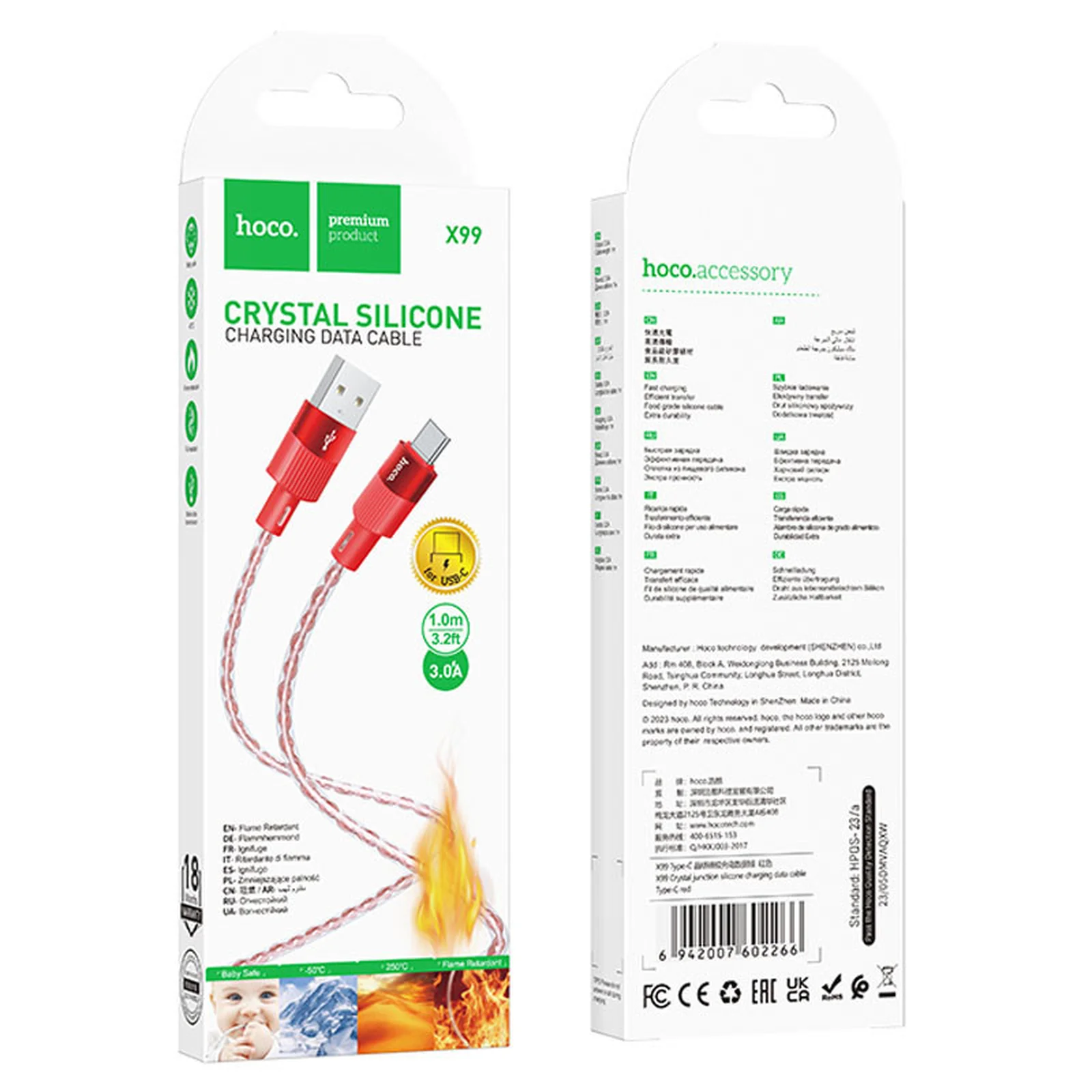 Дата кабель Hoco X99 Crystal Junction USB to Type-C (1.2m) Red