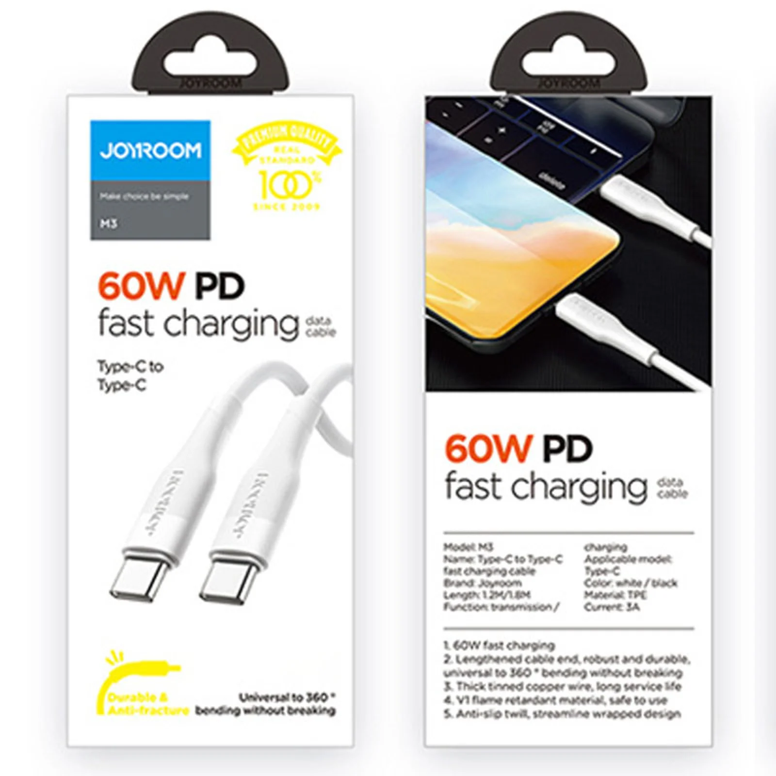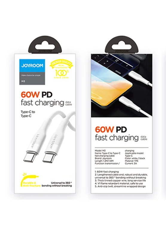 Дата кабель Joyroom S-1230M3 Type-C to Type-C 60W (1.2m) Белый