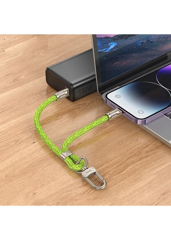Дата кабель-шнурок Hoco GH5 Elegant Type-C to Lightning (0.21m) Fluorescent Green