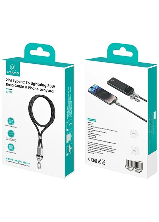 Дата кабель-шнурок Usams US-SJ746 Type-C to Lightning 30W (1.2m) Black