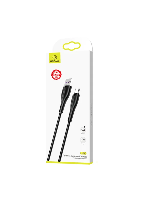 Дата кабель Usams US-SJ376 U38 Type-C 5A Fast Charging & Data Cable 1m (Черный)