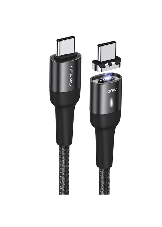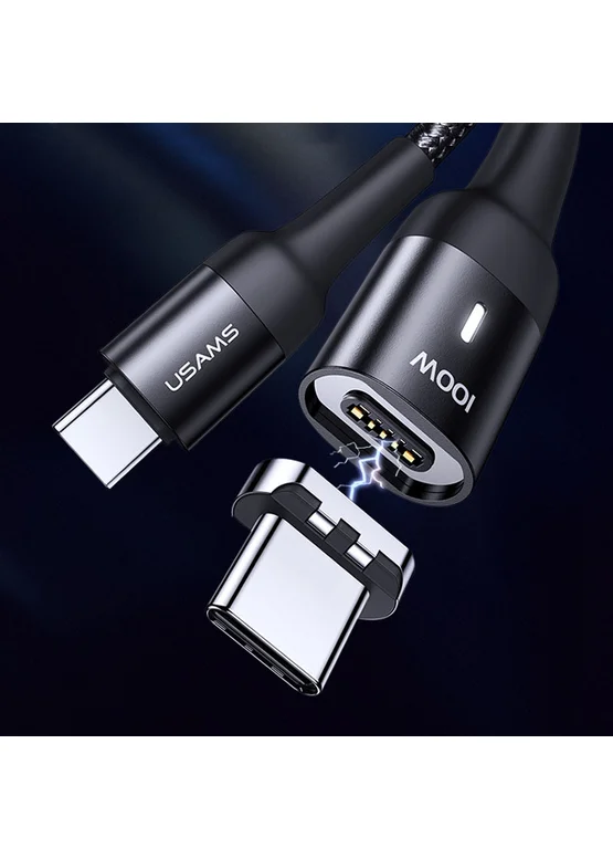 Дата кабель USAMS US-SJ466 U58 Type-C to Type-C 100W PD Fast Charge Magnetic Data Cable (1.5m) (Черный)