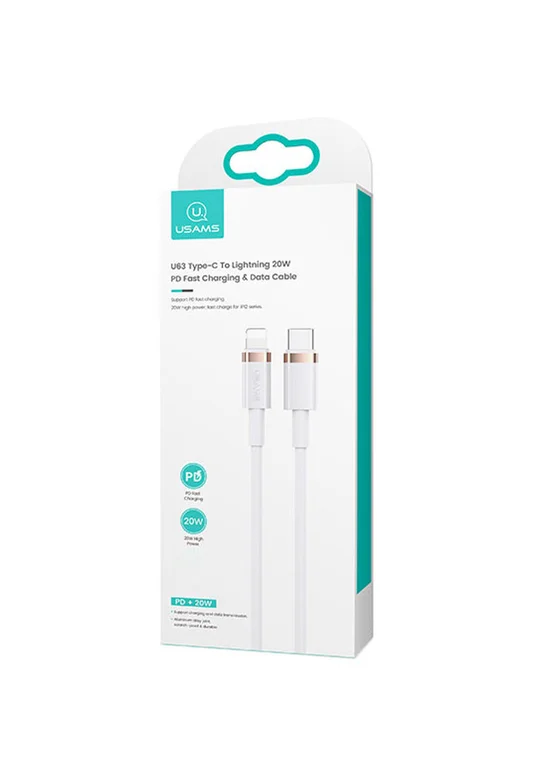 Дата кабель Usams US-SJ485 U63 Type-C To Lightning 20W PD (2m) Белый