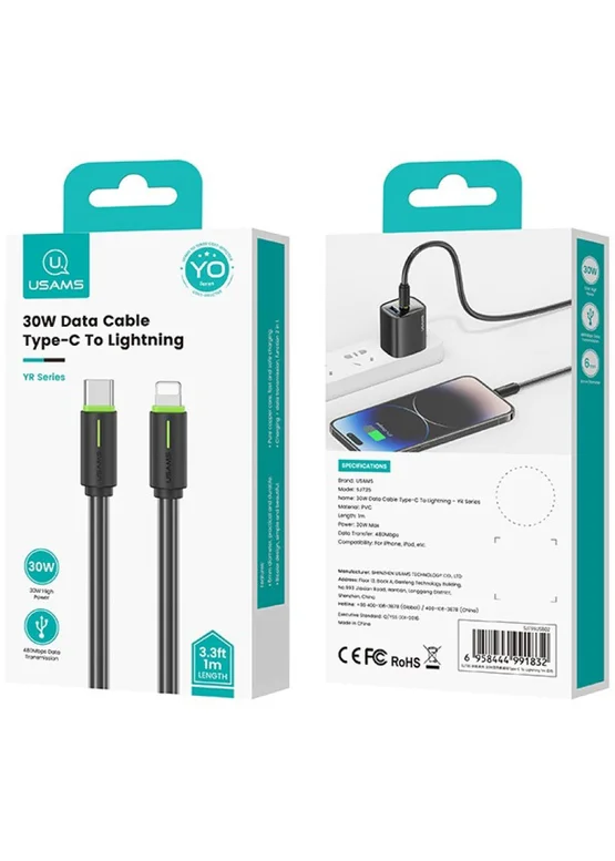 Дата кабель Usams US-SJ735 Bicolor Charging YR Ser. Type-C to Lightning 30W (1m)