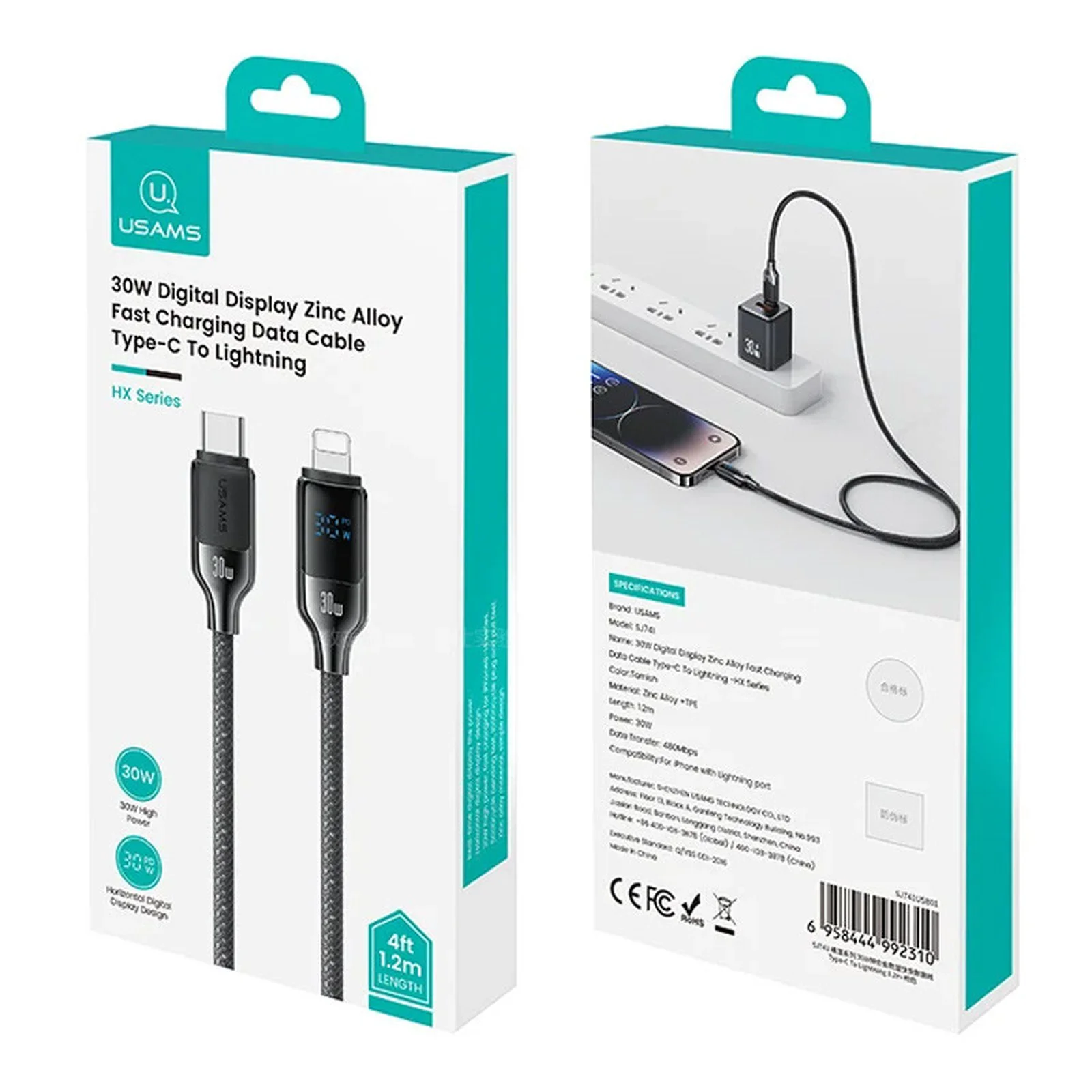 Дата кабель Usams US-SJ741 Digital Display HX Ser. Type-C to Lightning 30W (1.2m) Tarnish