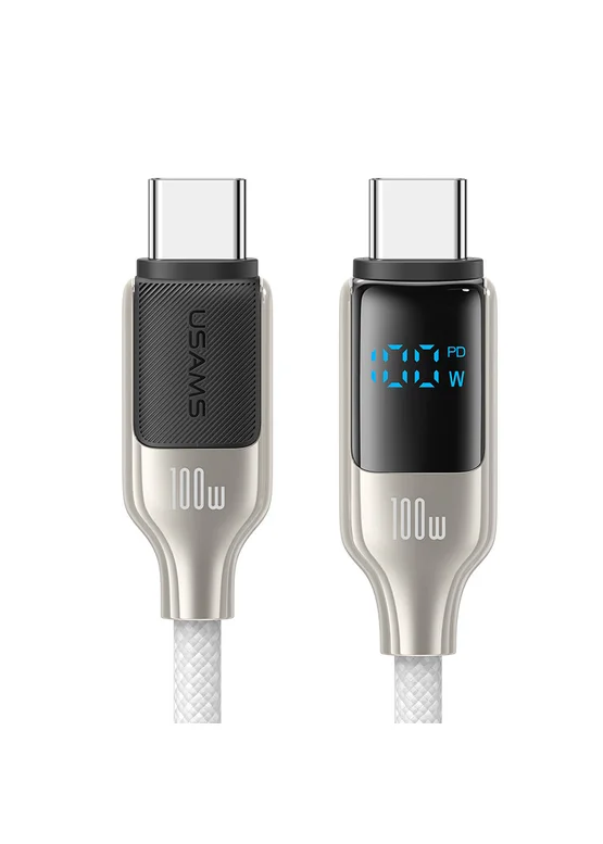 Дата кабель Usams US-SJ742 Digital Display HX Ser. Type-C to Type-C 100W (1.2m) Titanium