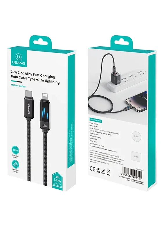 Дата кабель Usams US-SJ743 Meteor Ser. Type-C to Lightning 30W (1.2m)