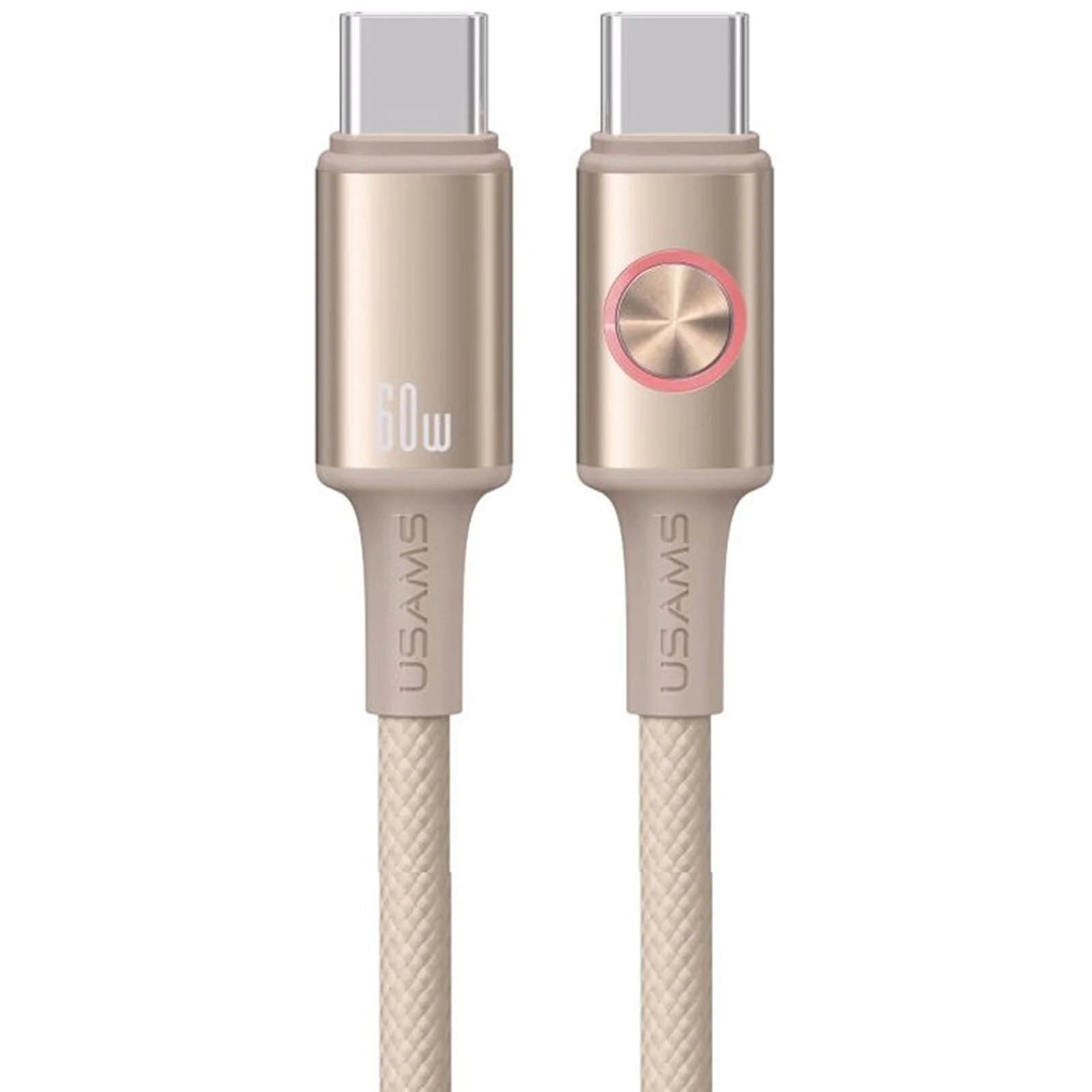 Дата кабель Usams US-SJ752 With Colorful Light Huan Ser. Type-C to Type-C 60W (1.2m) Desert Titanium