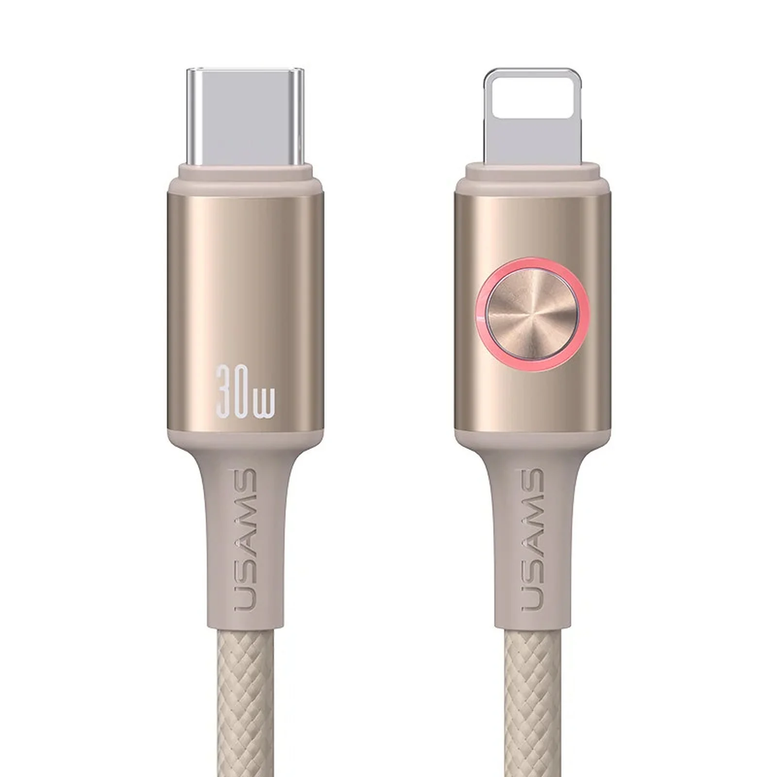 Дата кабель Usams US-SJ753 With Colorful Light Huan Ser. Type-C to Lightning 30W (1.2m) Desert Titanium