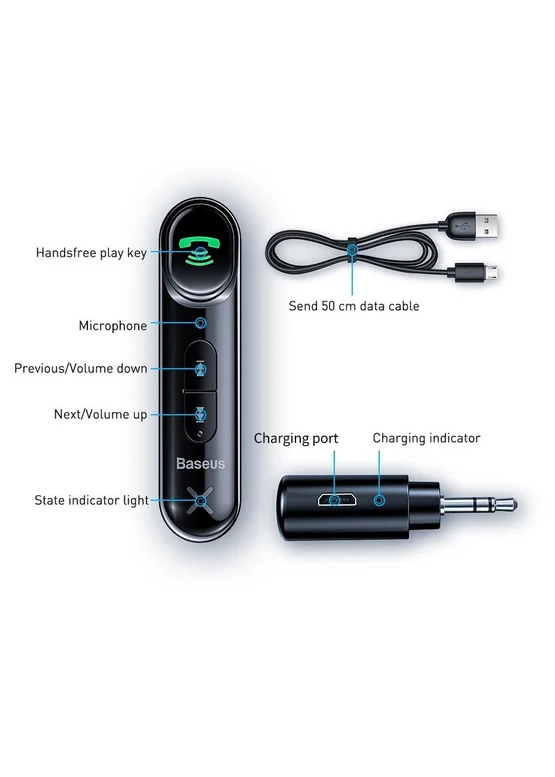 Адаптер Baseus AUX Qiyin Car Bluetooth Receiver (WXQY) Черный