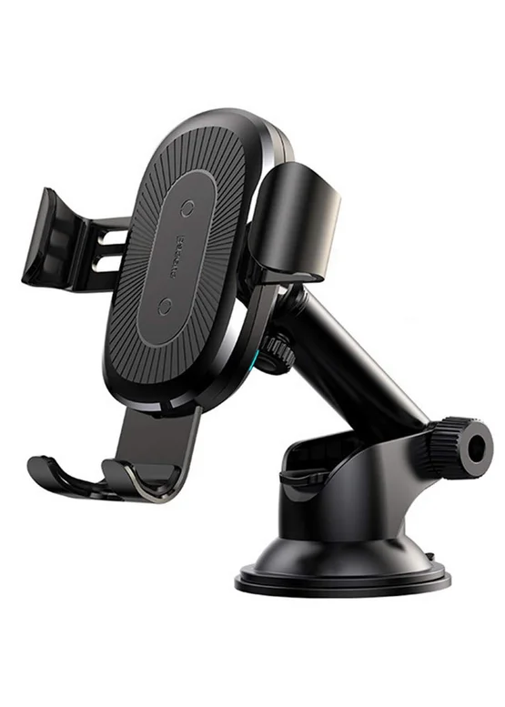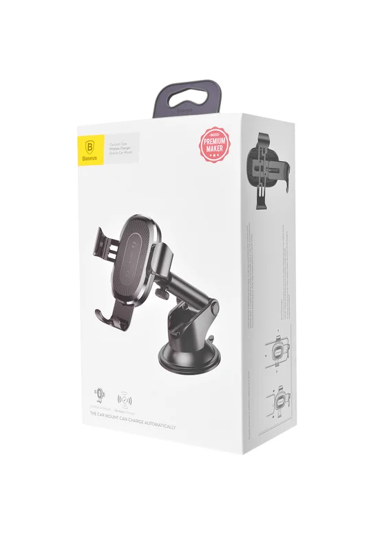 Беспроводное зарядное устройство, выполнено из высококачественных материалов, а также служит в качестве держателя. Держатель крепиться на приборную панель на присоску в салоне автомобиля. Модель надежно фиксирует смартфон с трех сторон, исключая выпадение гаджета. Регулируемые крепления позволяют закрепить смартфон любой диагональю. Нижнее крепление выполнено таким образом, чтобы можно было подключать кабель для зарядки устройств, в которых отсутствует поддержка беспроводной зарядки.
