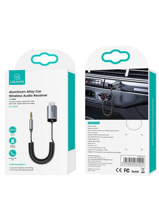 Bluetooth ресивер USAMS US-SJ504 Aluminum Alloy Car Wireless Audio Receiver BT 5.0 Серебряный / Красный