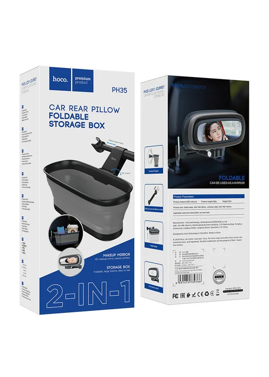 Держатель Hoco PH35 Lucky journey car rear pillow foldable storage box для автомобиля Черный / Серый