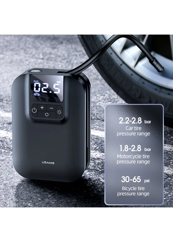 Портативный автокомпрессор для шин Usams US-ZB215 Mini Car 5000 mAh Черный