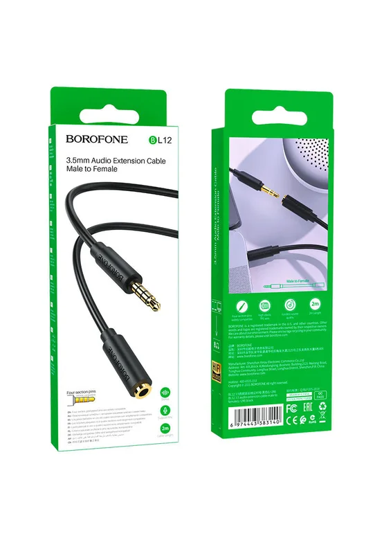 Аудио кабель Borofone BL12 3.5 audio extension cable Male to Female (2m) Черный
