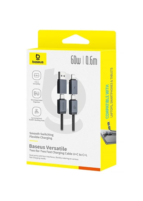 Дата кабель Baseus Versatile Two-for-Two USB/Type-C to Type-C/Lightning 60W (0.6m) (P10383000) Cosmic Black