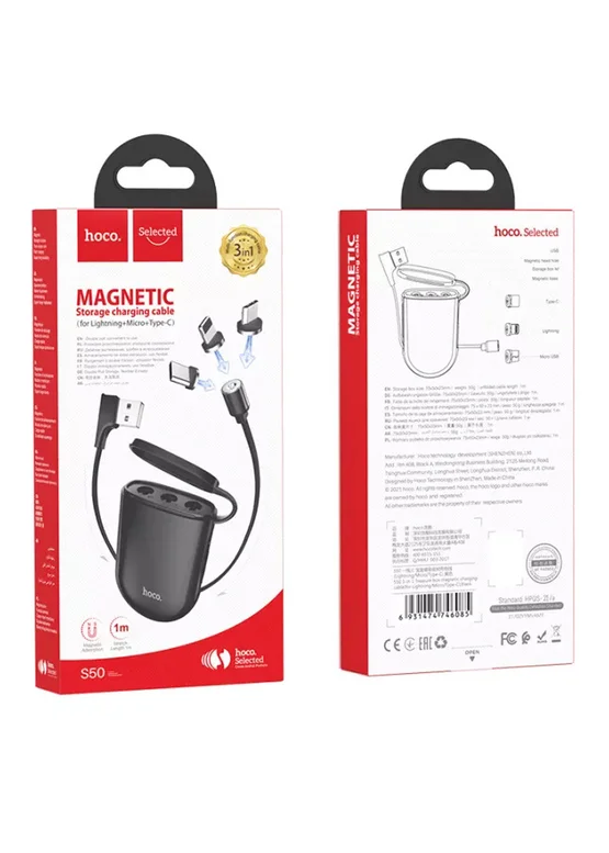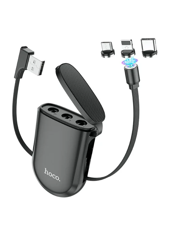 Дата кабель Hoco S50 Magnetic 3in1 Lightning-microUSB-Type-C (1m) Черный