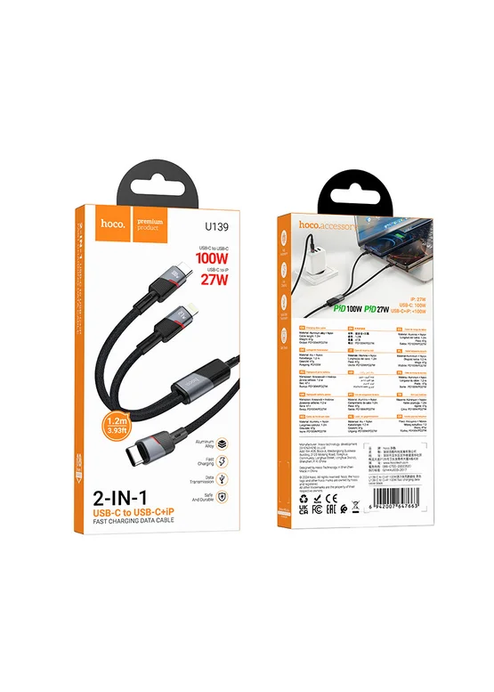 Мощность: Type-C - Type-C: не более 100 Вт (20 В/5 А) Type-C - Lightning: PD 27 Вт