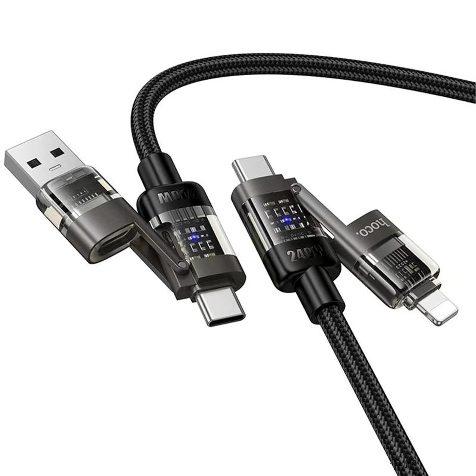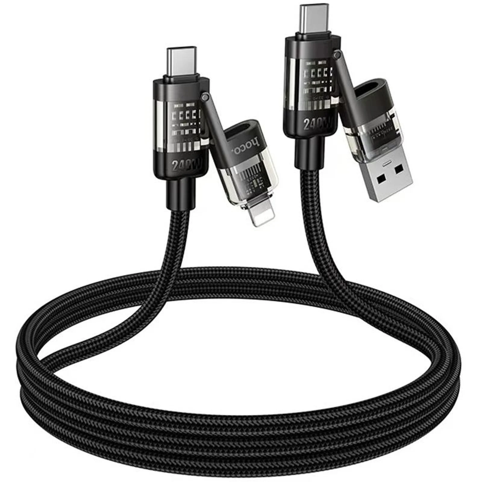 Дата кабель Hoco U151 Goldsmith 4in1 Type-C to USB/Type-C to Lightning 240W (1.2m) Black