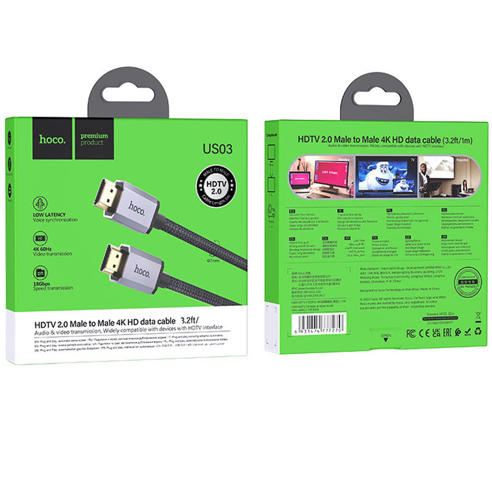 Дата кабель Hoco US03 4KHDMI Male To 4KHDMI Male (2m) Black