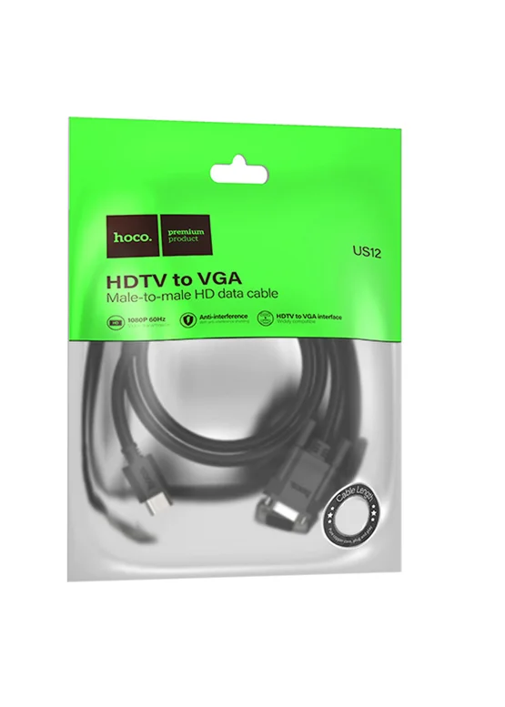 Дата кабель Hoco US12 HDTV male to VGA male HD (1m) Black