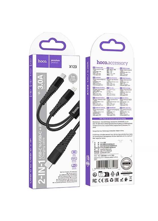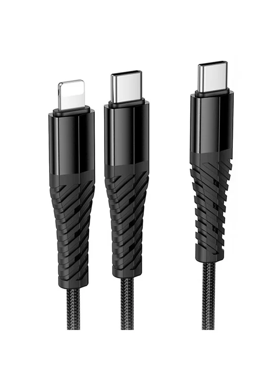 Дата кабель Hoco X123 Victory 2in1 Type-C to Lightning/Type-C 3A (1m) Black