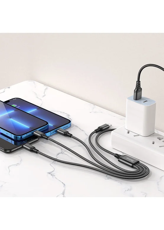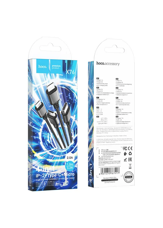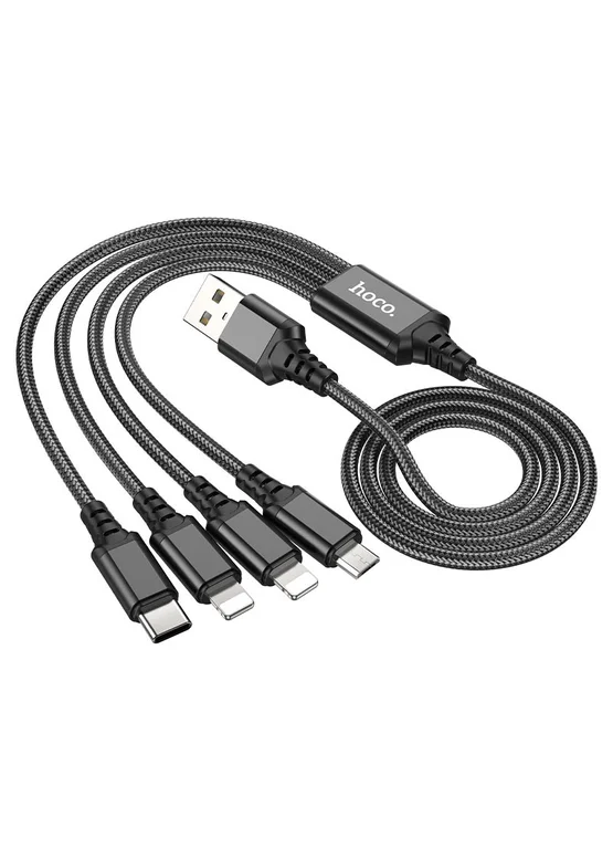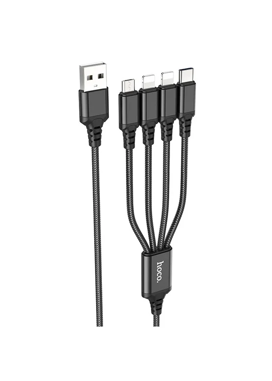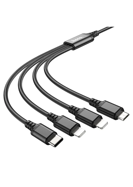 Дата кабель Hoco X76 4in1 2xLightning + Type-C + MicroUSB (1m) Black