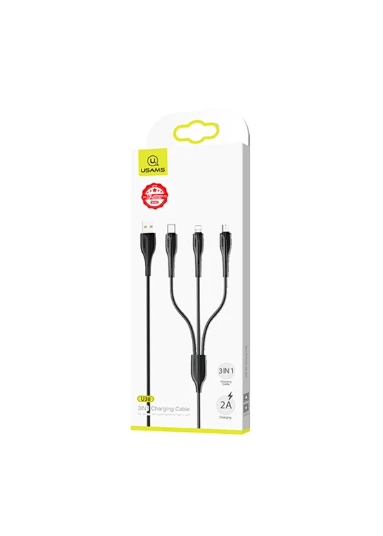 Дата кабель Usams US-SJ374 U38 3IN1 Charging Cable 1m (Черный)