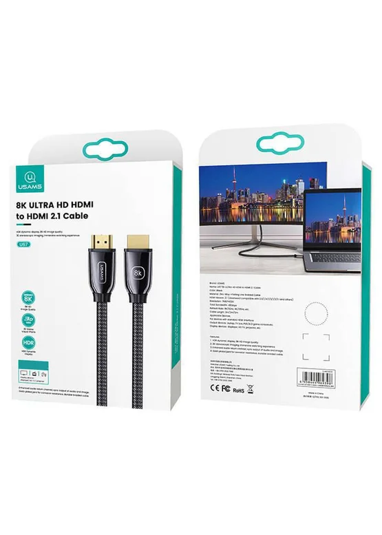 Дата кабель USAMS US-SJ498 U67 HDMI 8K Ultra HD to HDMI 2.1 (3m) Черный