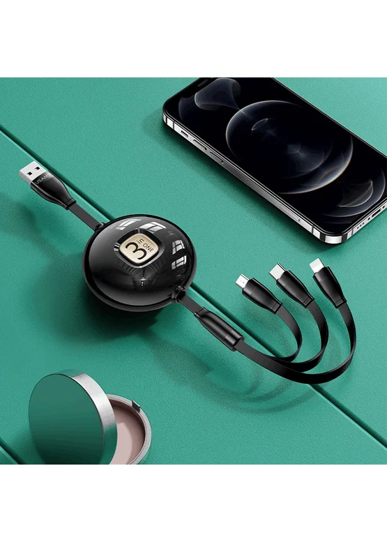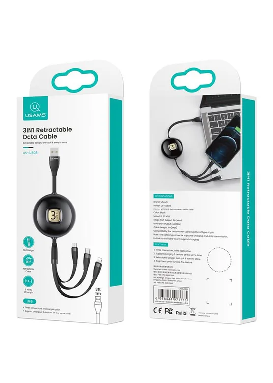 Дата кабель Usams US-SJ508 U69 3IN1 Retractable Cable 1m Черный