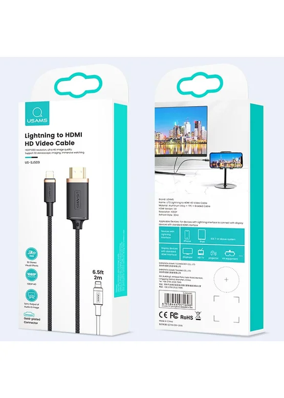 Дата кабель Usams US-SJ509 U70 Lightning to HDMI HD (2m) Black