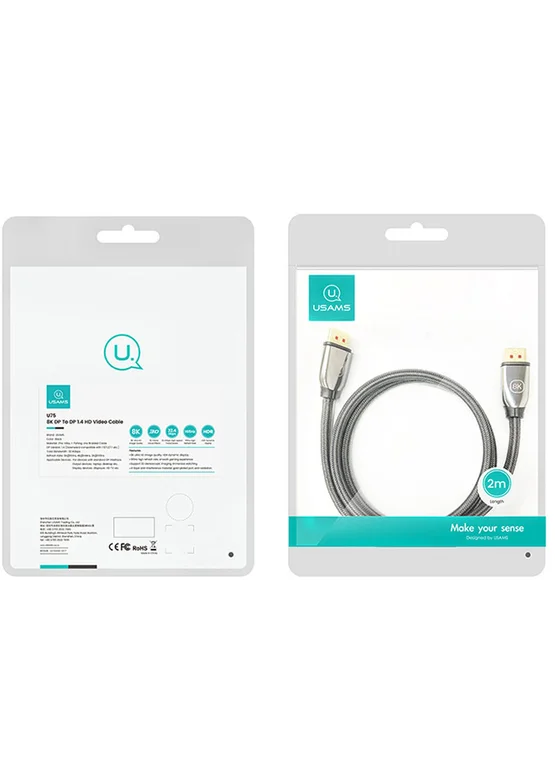 Дата кабель Usams US-SJ532 U75 8K DP to DP 1.4 HD (2m) Black